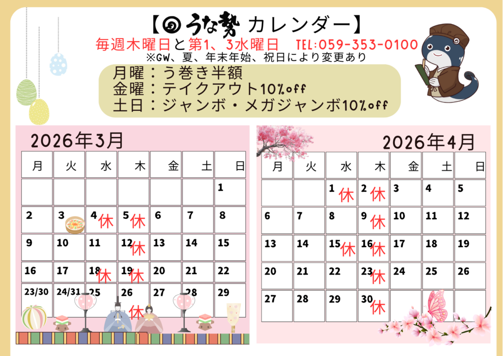 【営業カレンダー3-4月】